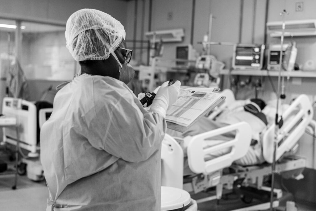 Foto retratando a rotina da Unidade de Tratamento Intensivo (UTI) do Hospital Universitário Clementino Fraga, da UFRJ, na…