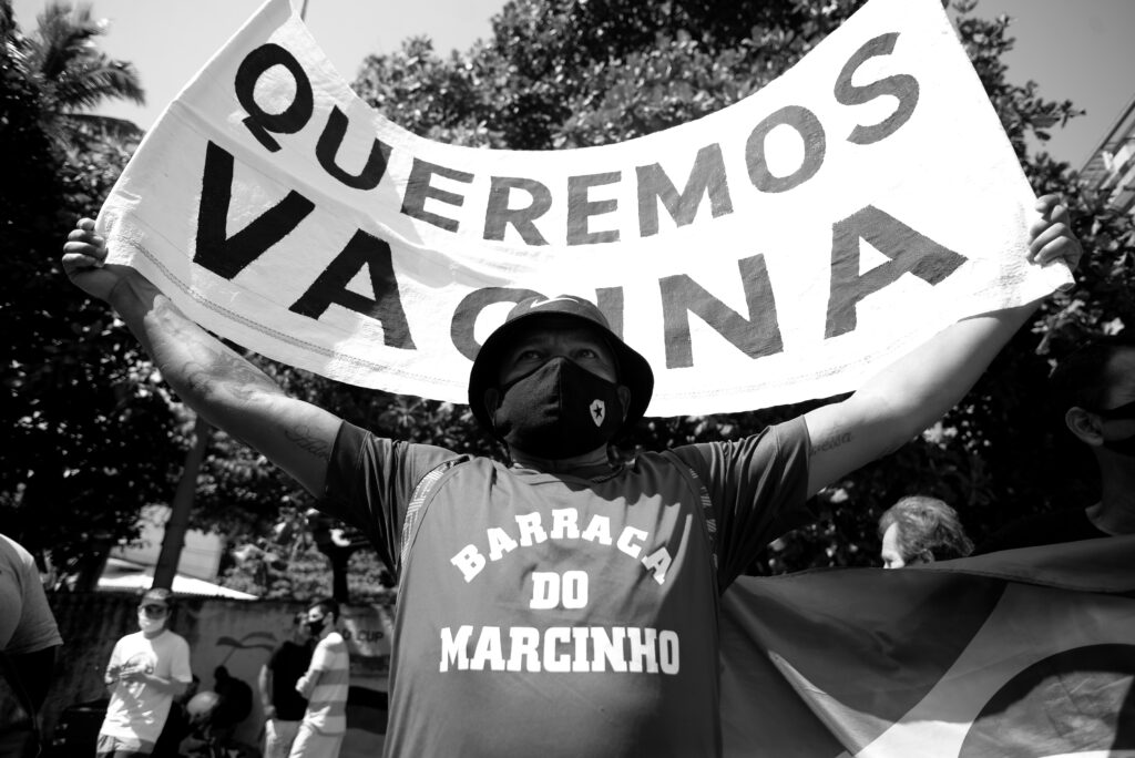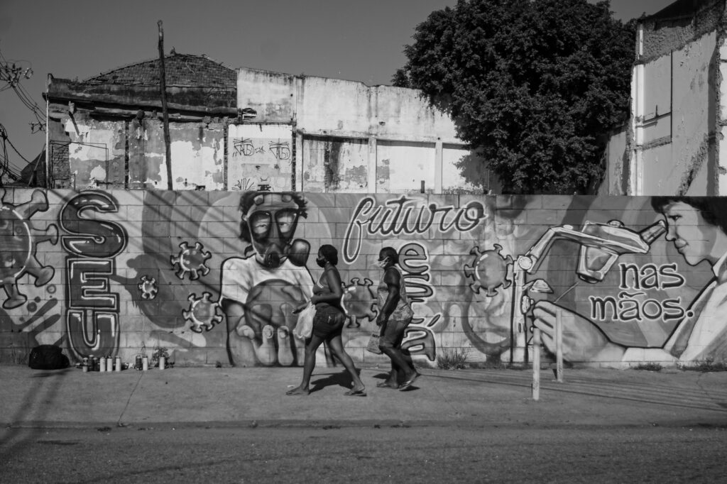 Desde o início da pandemia, Erbs Jr. acompanhou a movimentação nas ruas do Rio de Janeiro, registrando os impactos das medidas de isolamento social, as ações de órgãos públicos e de entidades civis, os gestos de solidariedade, a tensão vivenciada pelos profissionais da linha de frente, a corrida da ciência nos processos de testagem e o início da vacinação. O fotógrafo também documentou a atuação de movimentos reivindicatórios, assim como a presença de grupos negacionistas.